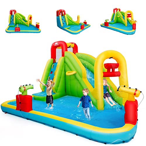 COSTWAY 7 Château Gonflable Aquatique avec Toboggan et Mur d...