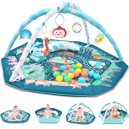 TFDER Tapis de jeu multifonctionnel pour nouveau-nés avec 8...