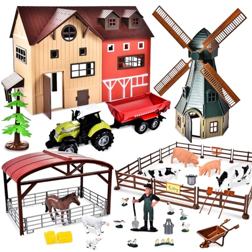 Hyrenee Ferme Animaux Jouet Set avec Moulin à Vent Maison Ch...