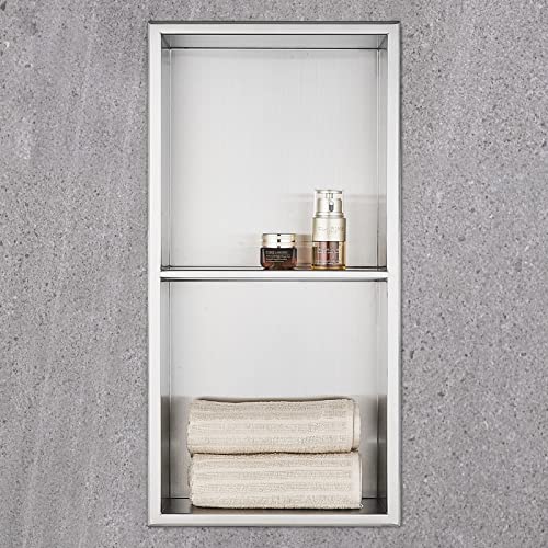 Niche Bain Murale Double Argent Acier Inoxydable Rangement S...