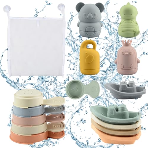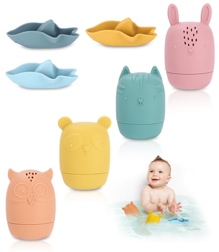 Silicone Jouet Bebe, 7 pcs, Jouet Bain Bebe 1 Ans, Matriochk...