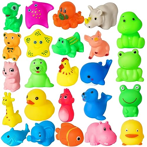 24 pièces jouets de bain compressables pour bébé animaux et...