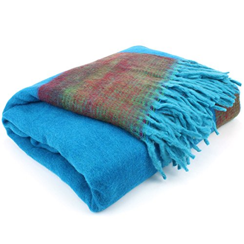 Nitt Handlooms Tibétain Yak's Laine Châle Couverture Bleu Ve...