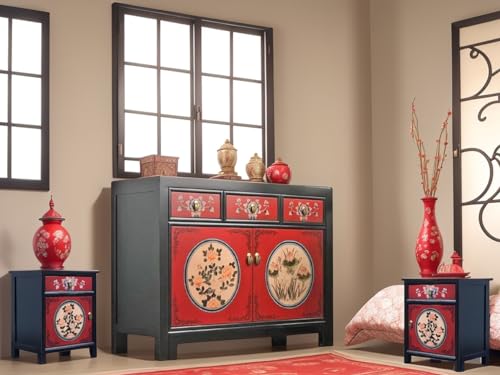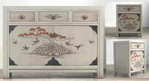 Buffet chinois avec 2 tables de chevet assorties avec des mo...