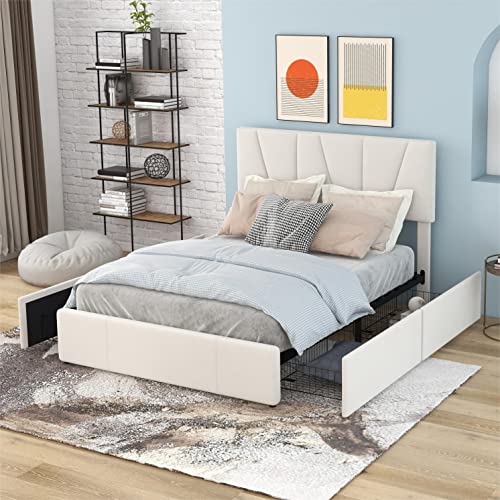 Azkoeesy Lit rembourré de 140 x 200 cm avec 4 tiroirs, lit d...