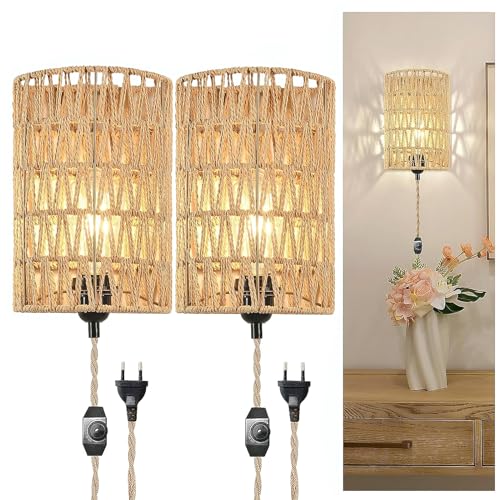 Murale Intérieure Rotin Boho, Lampe Murale Corde Chanvre, La...