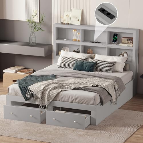 Lit 160x200 avec sommier à Lattes et Deux tiroirs,lit Coffre...