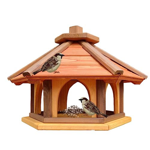 Mangeoire hexagonale bois oiseaux jardin