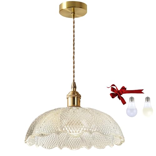 Bravsekai Suspension Luminaire Verre Cordon Réglable, 24cm P...