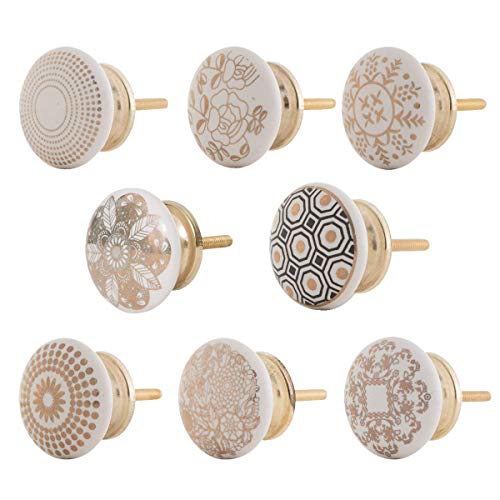 Lot de 8 boutons de meuble en céramique blanche avec motifs...