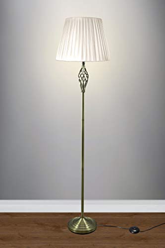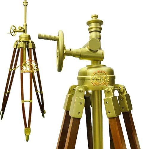 Lampadaire vintage en laiton antique avec trépied, grand tré...