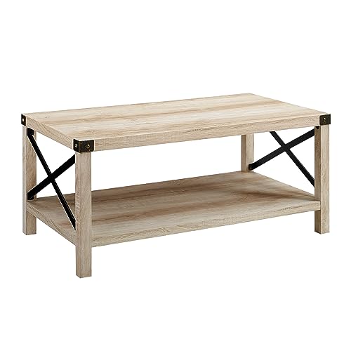 Rustic Modern Farmhouse Accent Coffee Table Étagère Ottomane