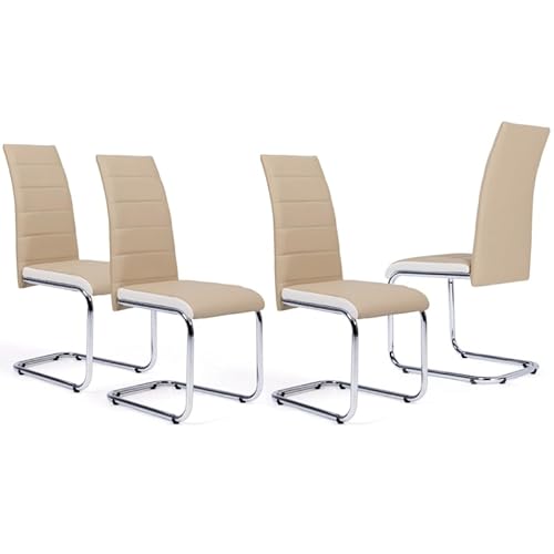 IDMarket - Lot 4 chaises beiges liseré blanc pour salle à ma...