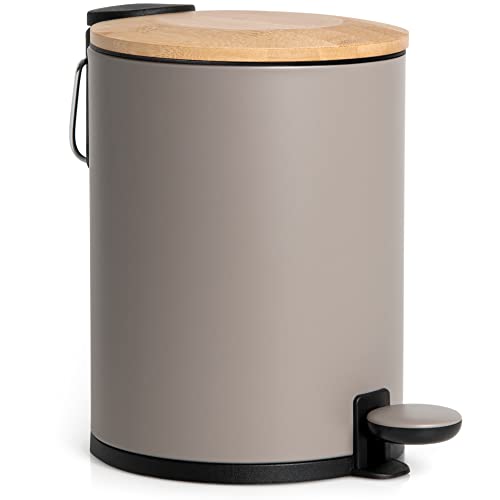 Kazai Poubelle Bain Bambou 3L Antidérapante Gris Chaud
