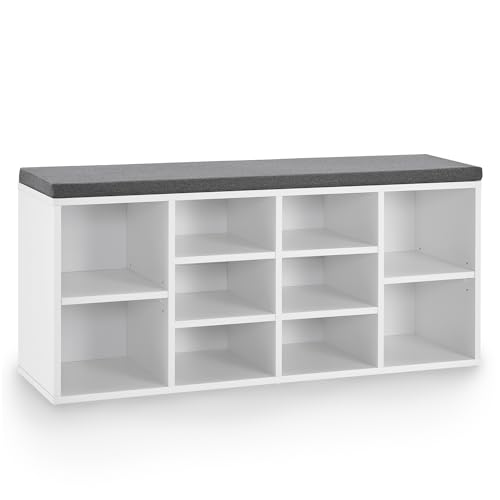 Étagère Chaussures Bois 10 Compartiments Réglables Blanc/Gri...
