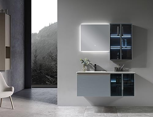 LuxeBain Gris Vasque Simple 120cm Marbre Effet Miroir