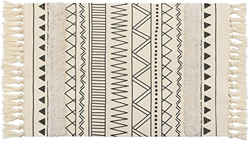 Tapis Yomshi géométrique en coton 60x90cm tufté, lavable, gé...