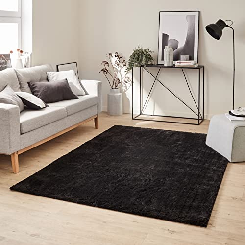 Carpetsale24 Unicolore Noir Tapis Salon Long poil doux