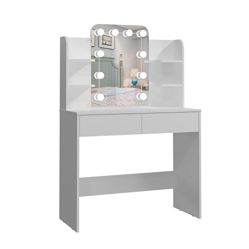 Panana Coiffeuse de maquillage avec miroir LED avec 4 étagèr...