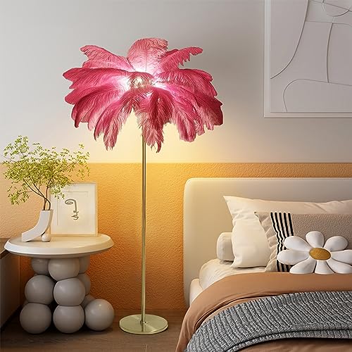 Lampadaire doré plumes d'autruche, éclairage décoratif