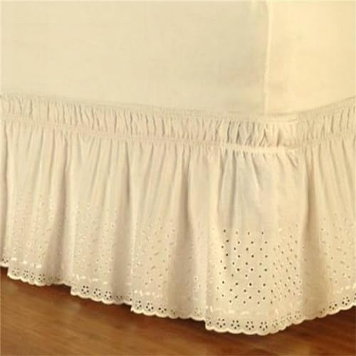Cache-sommier coton élastique 37cm volants brodés facile ins...