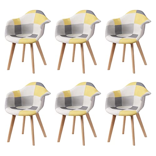 Ensemble 6 Chaises à Manger, Fauteuils Patchwork Lin