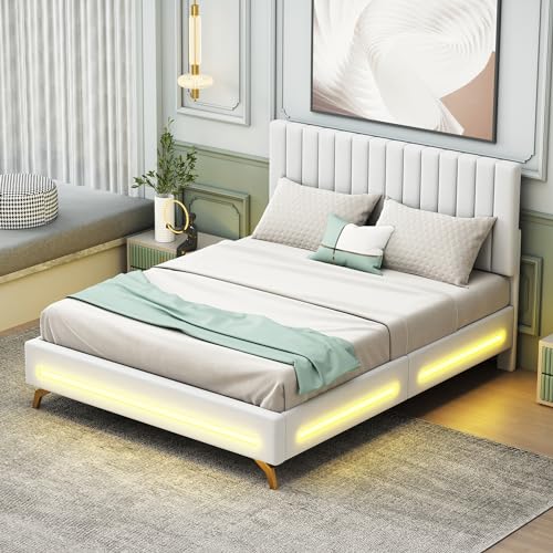 Double capitonné lit sommier LED métal velours, 140 x 200 cm