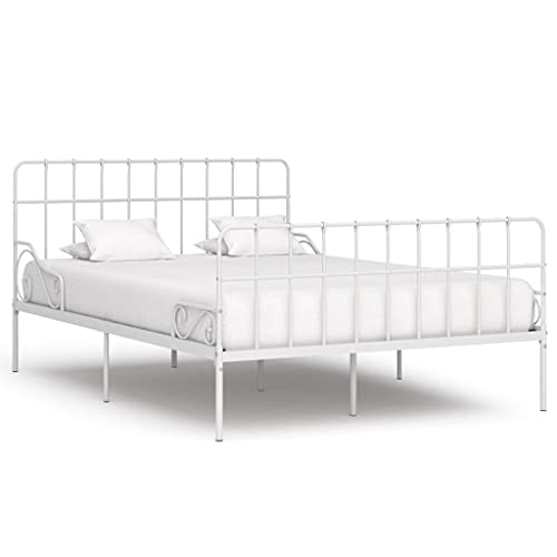 Cadre de lit métallique sommier à lattes blanc 120 x 200