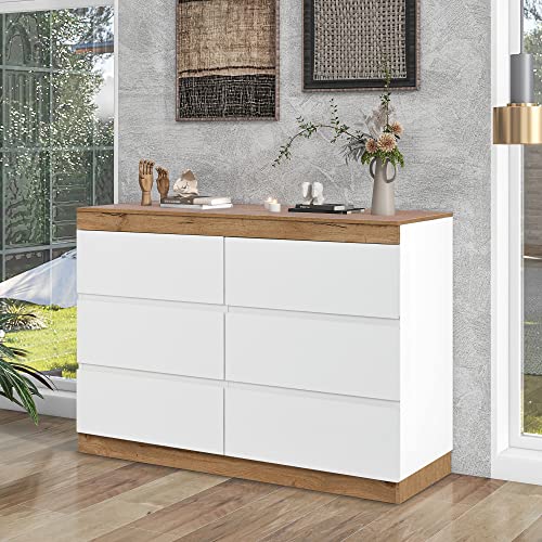 Sweiko - Commode moderne de 109,2 cm avec 6 tiroirs - Blanch...