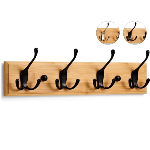LARHN Porte Manteau Mural Bois - 4 Crochets Triples en Noir...