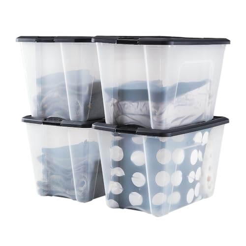 Plastique Rangement 60L Noir Empilable Organisation Solide p...