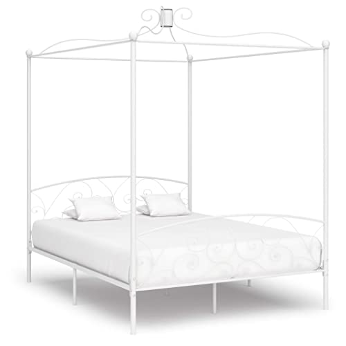 Cadre métal blanc baldaquin lit 90x200cm