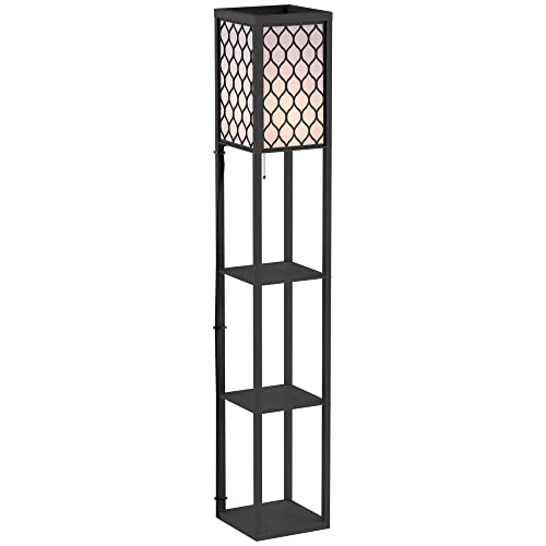 Lampadaire étagère MDF noir nid d'abeille 26L x 26L x 160H c...