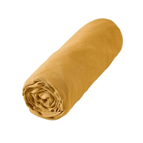 Drap Housse 160x200cm Lin Lavé Coloris Miel de la gamme Marg...