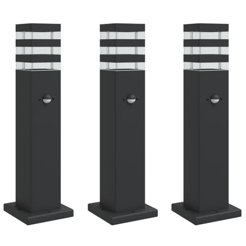 Lampadaires extérieurs XL avec capteurs noirs 3 pcs aluminiu...