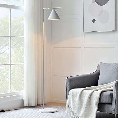 Lux Lampadaire Conique E27 Pied Métal et Marbre Blanc 160cm