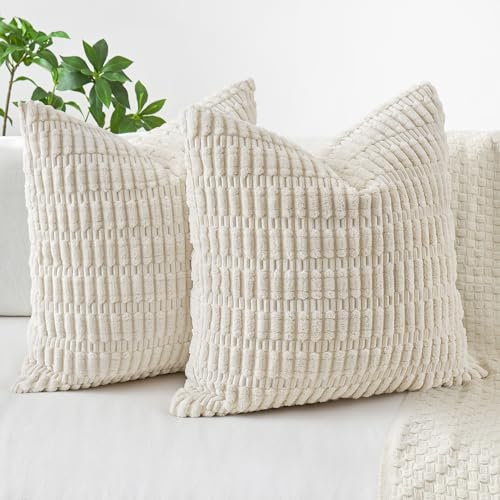 MIULEE Lot de 2 Housses de Coussin Carrées en Velours Côtelé...