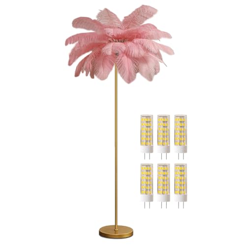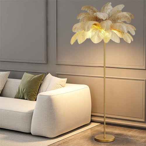 ZHQZXCV Lampadaire plumes autruche LED doré
