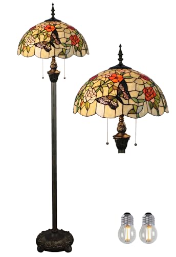 Kinbolas Lampadaire Art Déco Abat-jour Sur Pied Vitrail