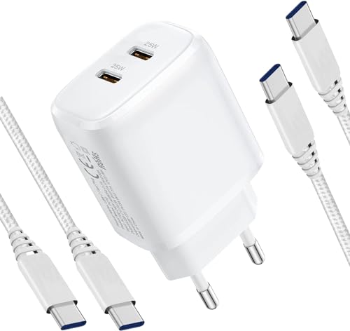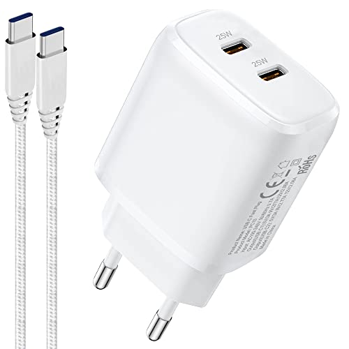 Dual USB-C PD 25W Chargeur Rapide avec 2Pack Cable USB C ver...
