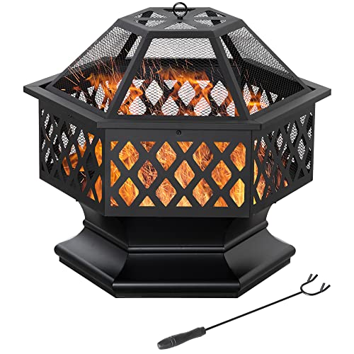 Outsunny Brasero cheminée Foyer extérieur Hexagonal en Acier...