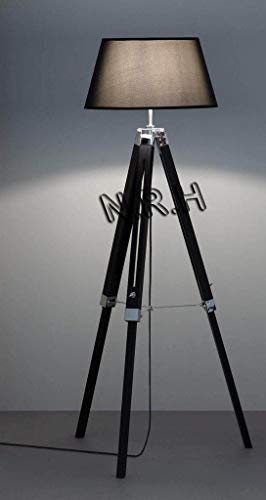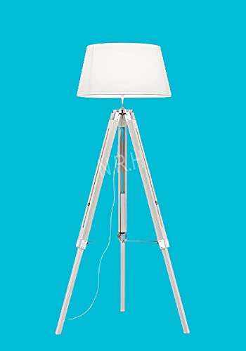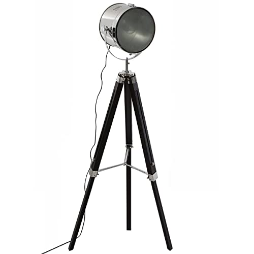Lampadaire trépied en bois avec base en bois chromé (sans ab...