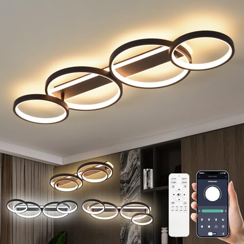 LED Plafonnier 48W 3000K-6500K, 4 anneaux ronds design, Cham...