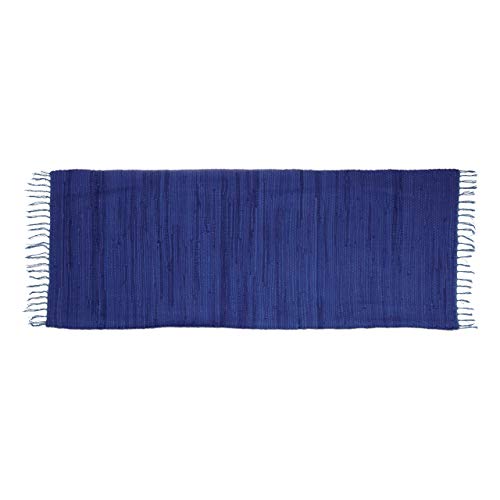 Relaxday Tapis Couloir Franges Coton Bleu 70x140x1cm