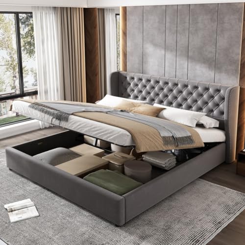 Lit rembourré 160*200 velours cadre avec sommier à lattes, l...
