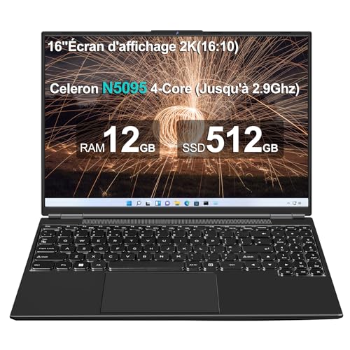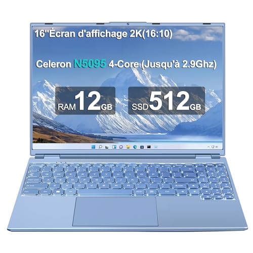 AOCWEI 16 pouces PC Portable 512 Go Win11 N5095 2K