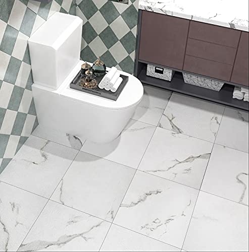 Fonstick Dalle PVC Adhésif Sol Blanc Autocollant Carrelage R...