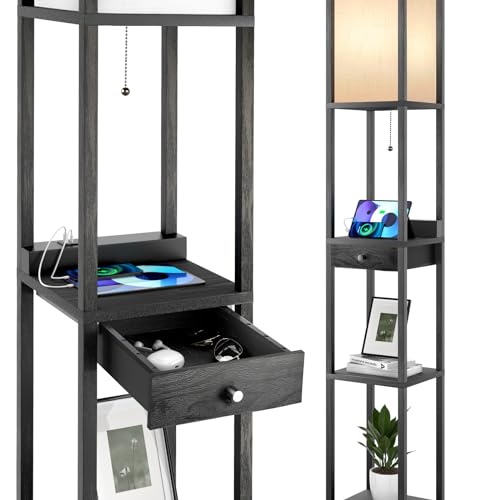 Lampadaire moderne LED avec étagères et tiroir, 1 port USB-C...