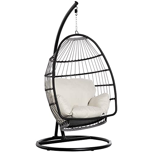 Outsunny Fauteuil œuf Suspendu balancelle Pliante avec Couss...