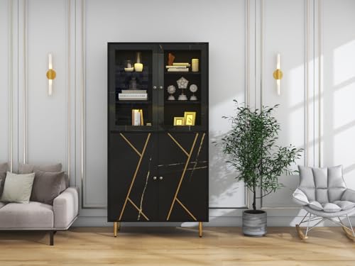 POYHKFD Armoire haute à 4 portes, 7 compartiments, avec fenê...